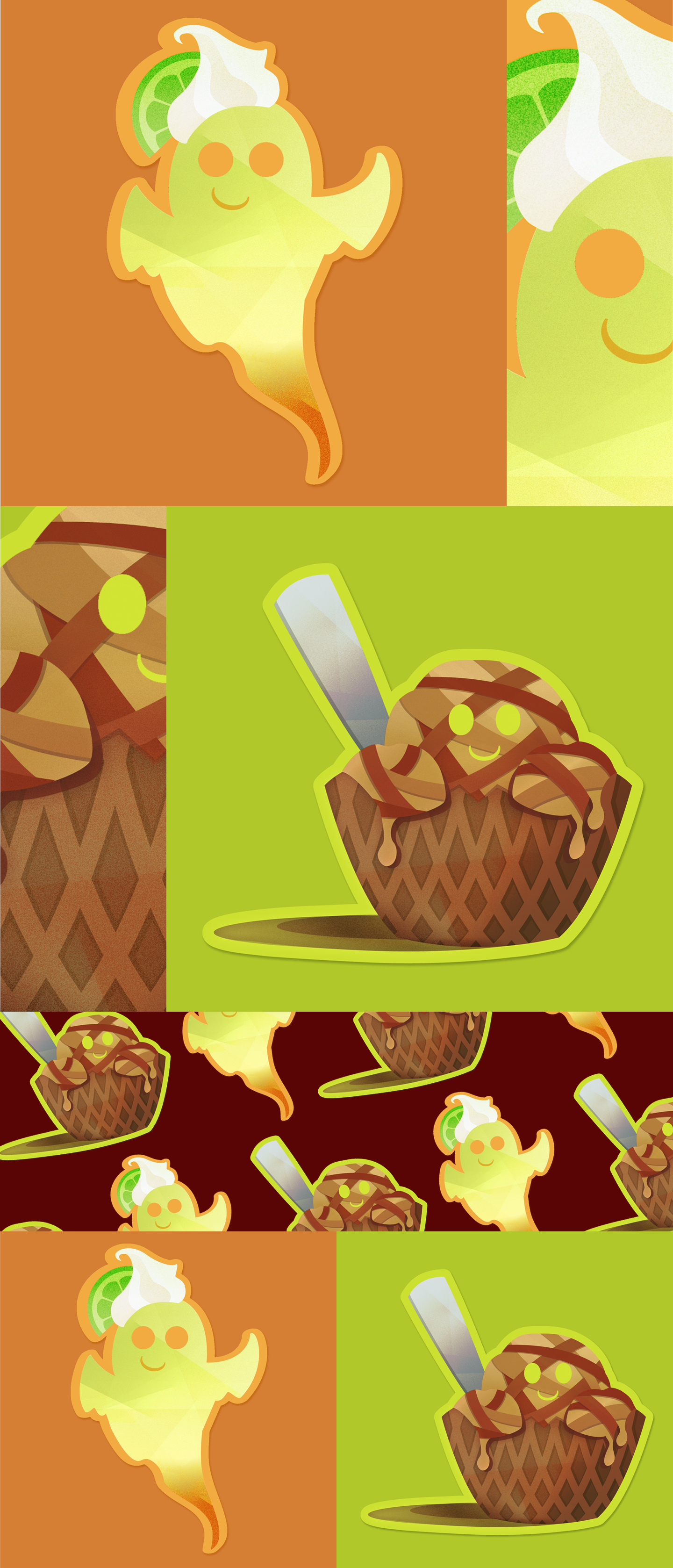 A personal project exploring the combination of sweet desserts and cute Halloween monsters.